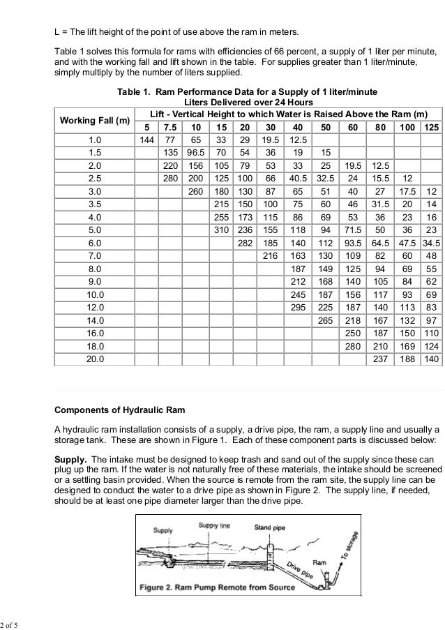 Rife Water Rams | Насос, Деревообработка, Изобретения from i.pinimg.com Water to pumped water is dependent on lift height and inlet pressure as well as size of the unit, etc. The ram pump will have a 1:7 ratio of feet of head to lift. This does not mean that you are limited to 25 feet of pipe. Thus if the source is 2 meters above the ram and the water is lifted to 10 meters above the ram, only 20% of the supplied water can be available, the other 80% being spilled via the waste valve. The stream flow required for this is at least 102 gallons per minute (0.23 cfs). Output depends on fall, lift, and flow; Typically, atmospheric pressure limits vertical suction lift of pumps to 25 feet at sea level. The 2 high lifter is designed to supply water for preppers, homesteaders, ranchers, and gardener,s and any application off the grid.